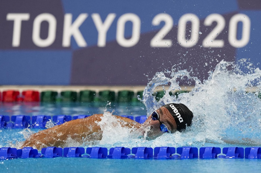 Gregorio paltrinieri breaks european record on 1500m freestyle during trofeo 7 colli, rome, 13th august 2020.